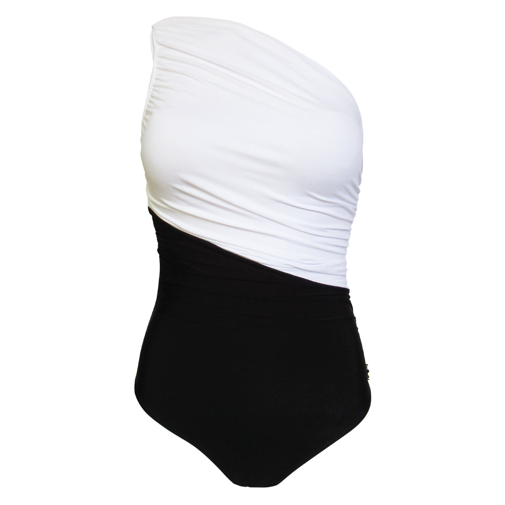 Brigitte Sandra One Shoulder One Piece - White and Black