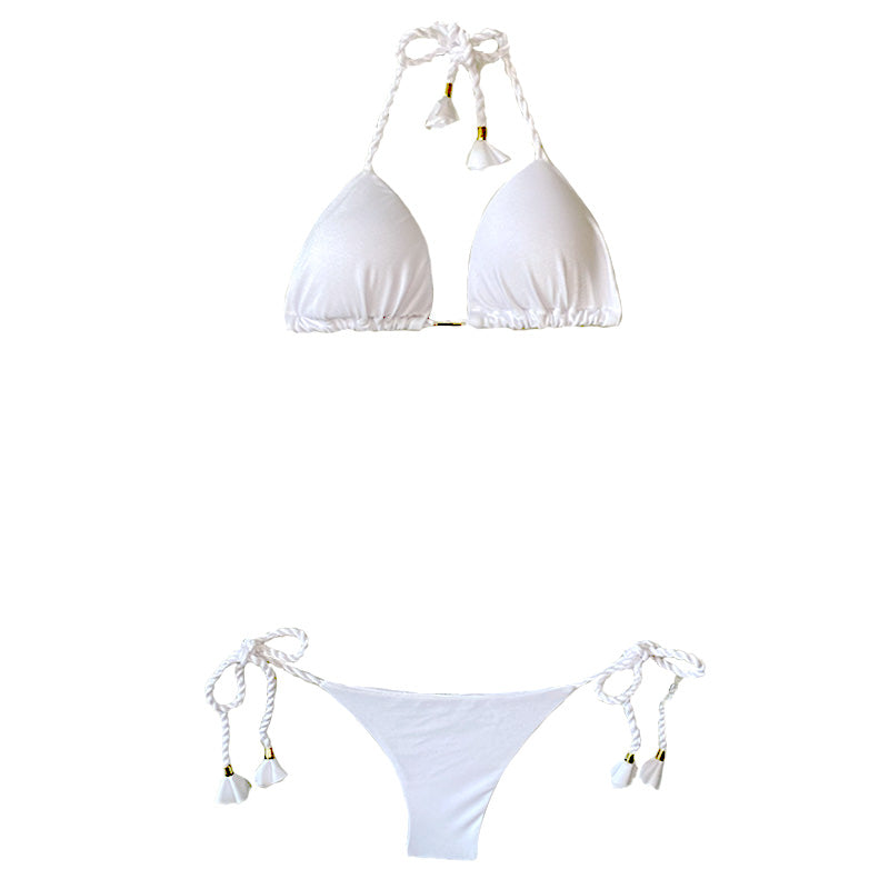 Garota de Luxo White Brazilian String Bikini with Corded Straps