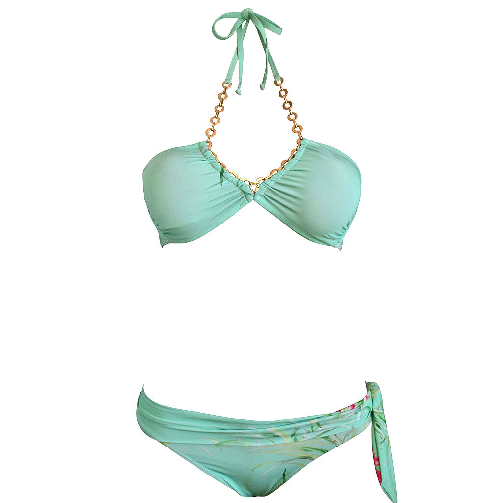 Adriana Degreas Lakshmi Mint Green Floral Gold Chain Bikini