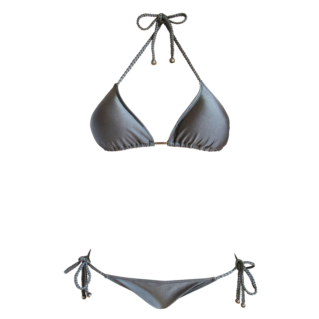 La Sirene Lila III Braided Designer Women's Triangle Brazilian Bikini - Charcoal