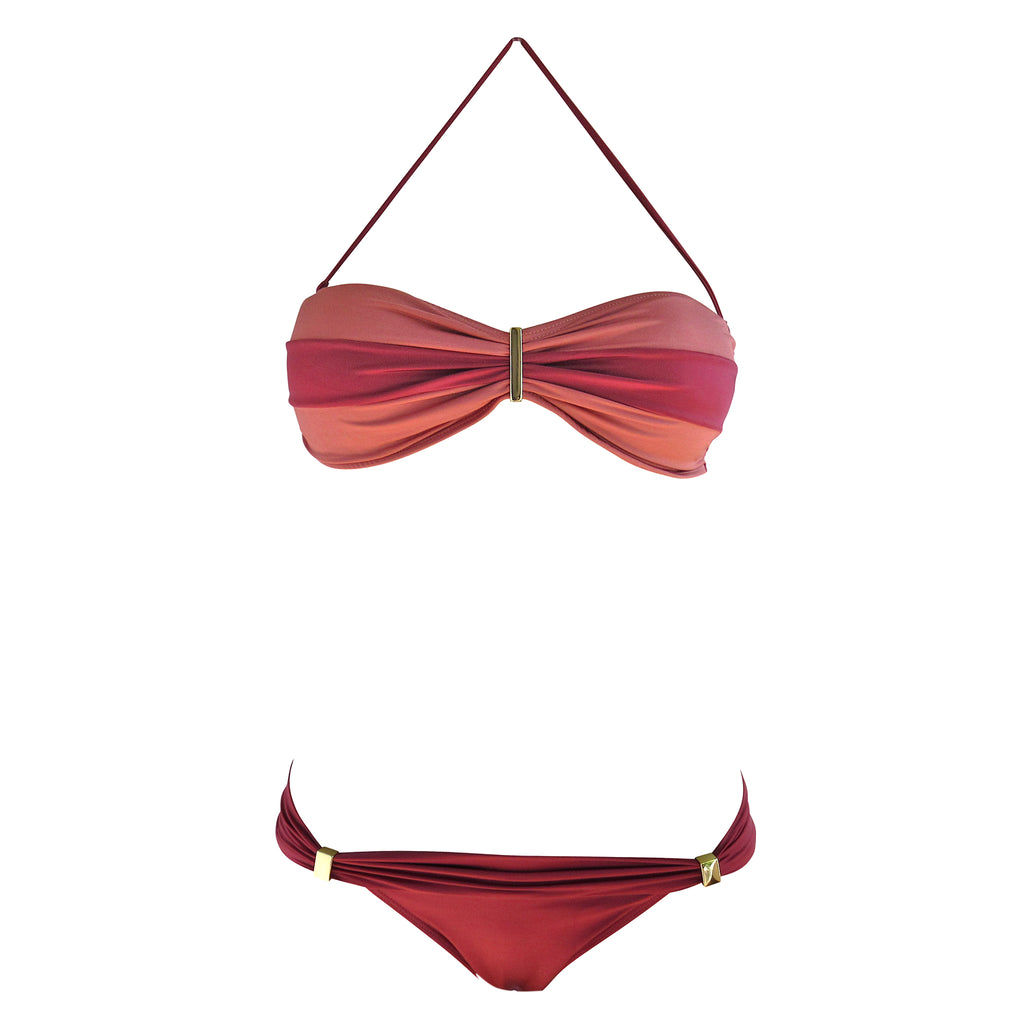 Brigitte Lara Red and Orange Stripe Color Block Bandeau Bikini - Guava Sunset