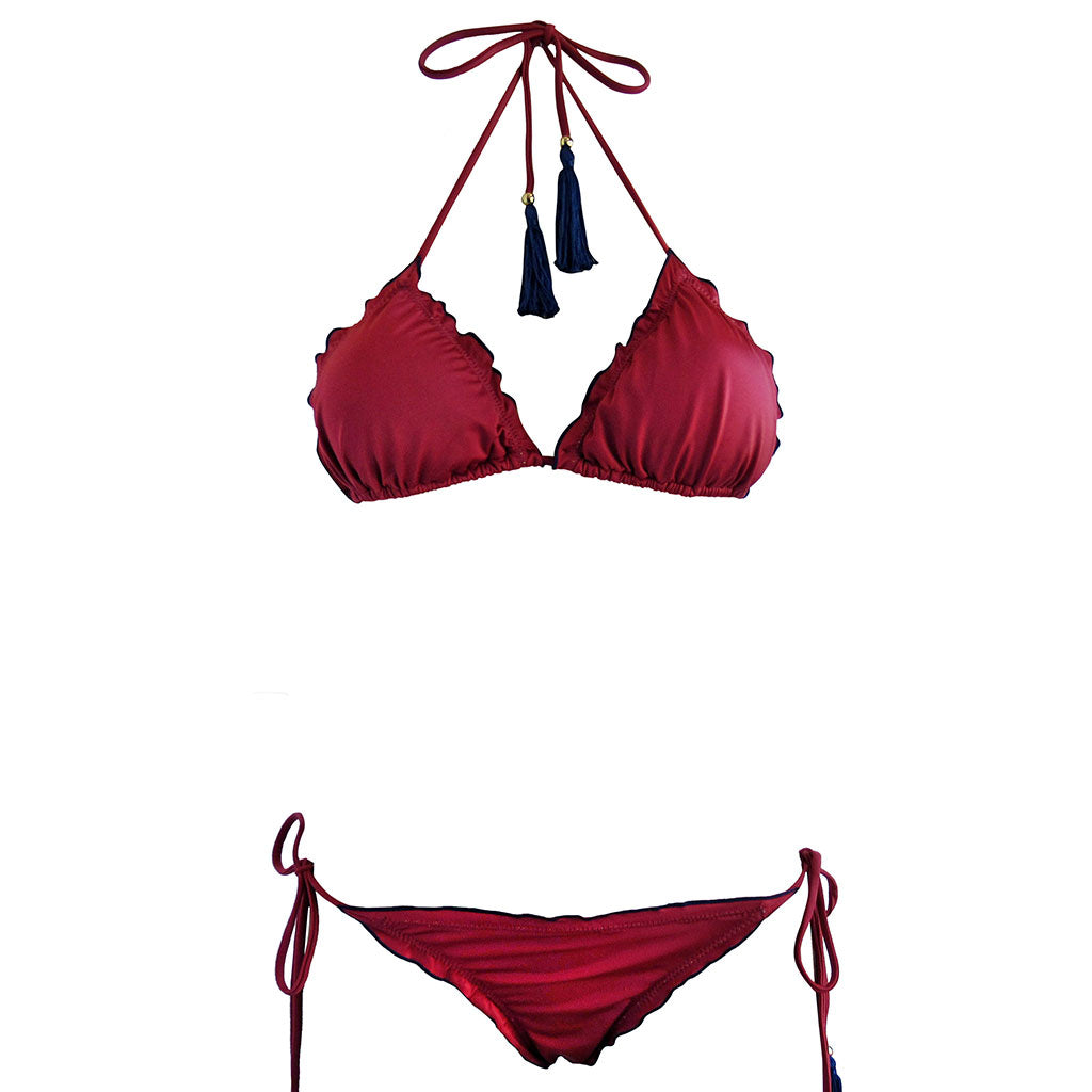 Brigitte Ripple Triangle String Bikini - Goiaba Red