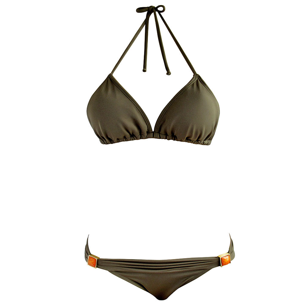 Brigitte Tati Triangle Bikini with Gemstone Accent Army Green