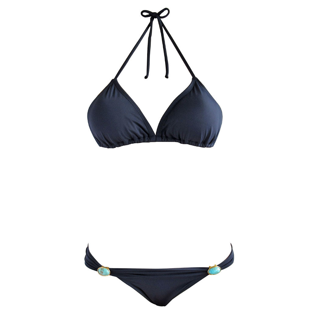 Brigitte Tati Triangle Bikini with Turquoise Gemstones Navy