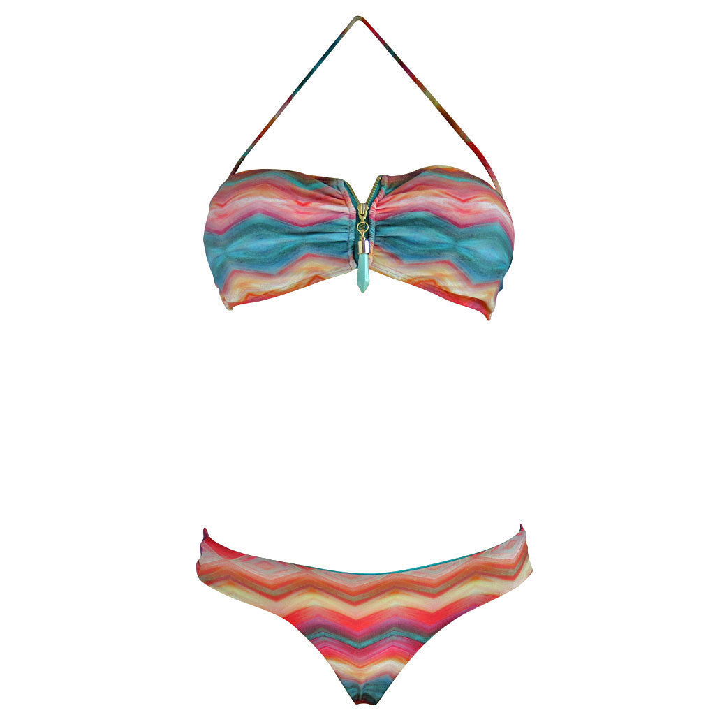 Brigitte Trancoso Tropical Sunset Print Zipper Bandeau Bikini